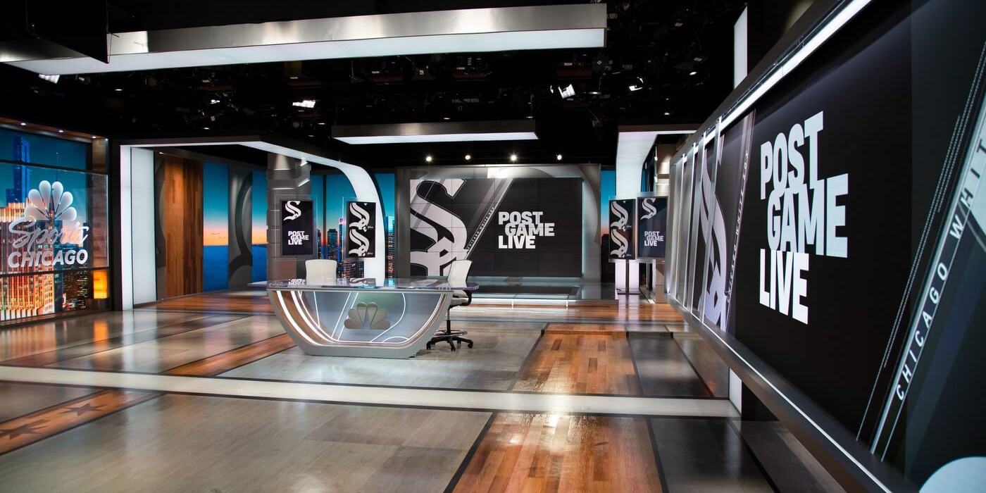 NBC Sports Chicago debuted its new studio for the White Sox’s modified opening day on July 24, 2020, following the suspension of the season for the Coronavirus pandemic. The studio, which incorporates imagery of the city & the NBC peacock into its design, was largely built under strict public health safety measures, to protect the team from COVID-19. LDG’s lighting design highlights the different scenic textures from frosted glass to brushed metal and allows for a flexible use of the large studio. The studio will be used for a number of sports pre and post game programming including the Bulls, Bears, and Black Hawks.