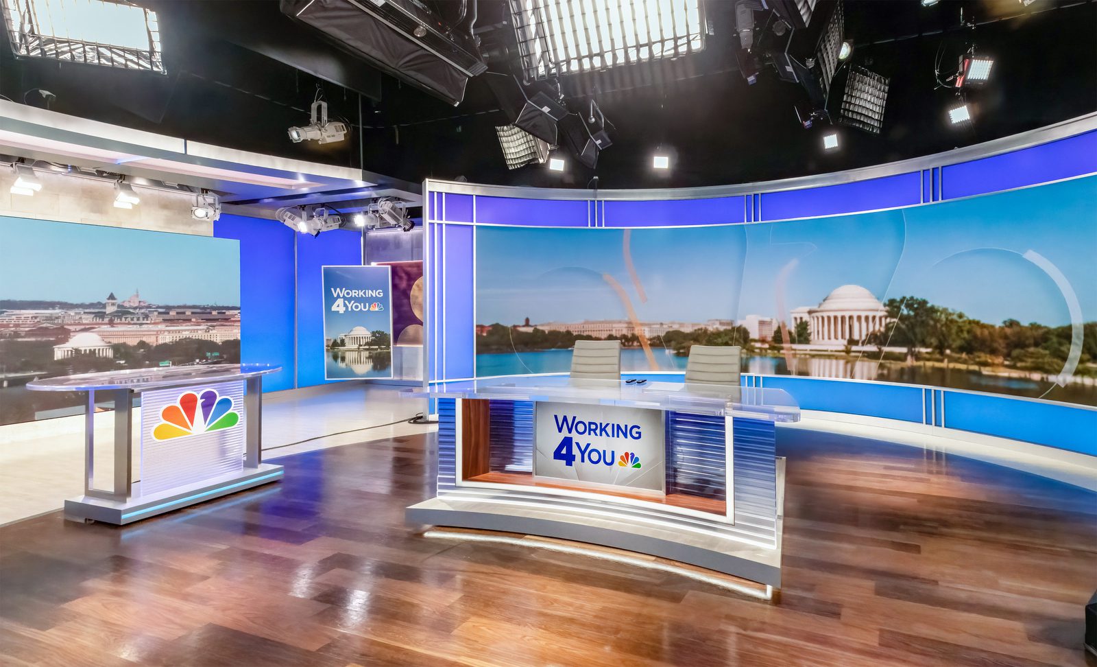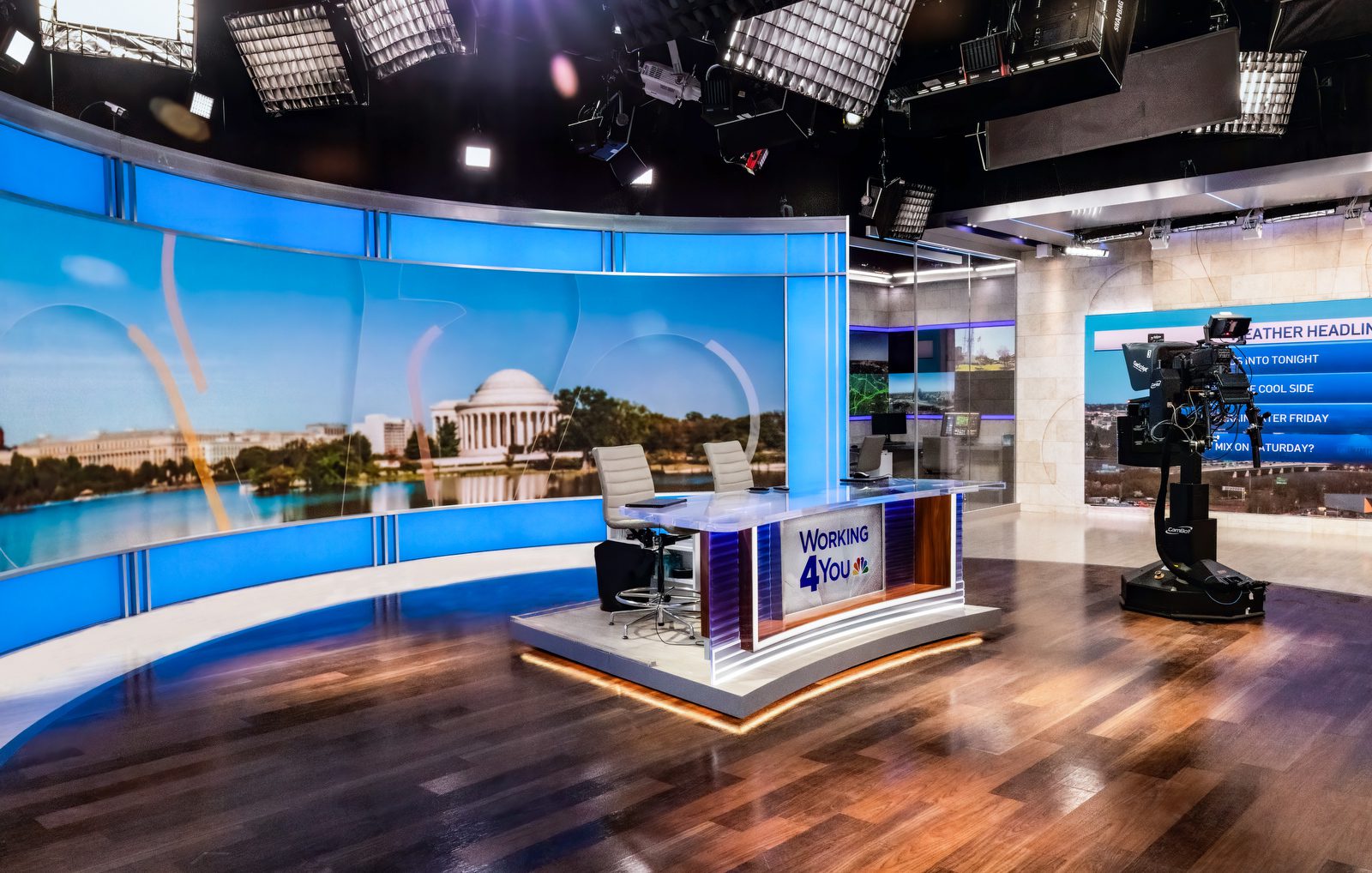 WRC, NBC’s Washington DC local news station & their Telemundo sister-station, WZDC, debuted their new Nebraska Avenue studios in March of 2022. Originally built in 1958, the Nebraska Avenue facility is full of history & tradition, was once home to the NBC News Washington Bureau, famed journalists such as Tim Russert & David Brinkley, and hosted the pivotal Kennedy-Nixon debates. This renovation brings the local stations to the forefront with state of the art technology & a flexible yet nuanced design evocative of the locale & rich history.
