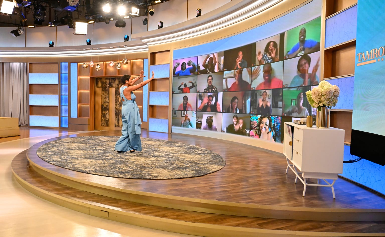 Season two of Tamron Hall premiered on Sept. 14, 2020 in ABC’s Studio TV2. The show was rebranded in the midst of the pandemic with new graphics and altered scenic and lighting designs to reflect the new look. The set is draped in gold and pale blue backlit bands to create an intimate atmosphere where the host can speak with her guests on a variety of subjects from lighthearted topics like cooking segments, fashion shows, and musical performances to hard-hitting human-interest stories about survival, crime, and personal tragedy. A large video wall behind Hall enables her to have a virtual audience and conduct interview segments while maintaining safe distance. Commendations to our design team who worked through the unusual challenges presented by the pandemic to present a beautiful engaging talk show.