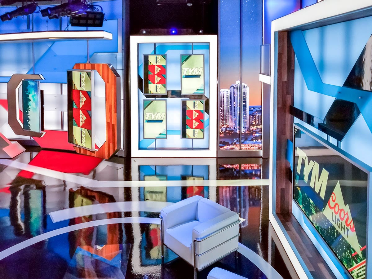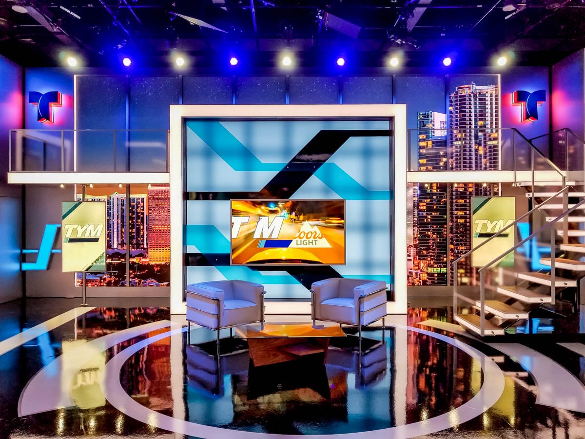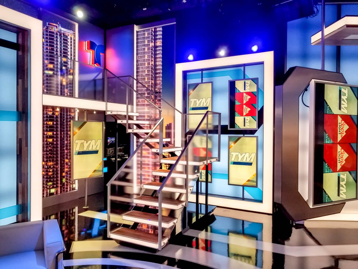 Studio A is a shared space between Telemundo Deportes and TYM. Both shows shoot in 360. There are approximately 15 various shooting areas, split between both shows. The extensive use of LED technology allows both shows a high degree of flexibility in terms of style and look, which varies significantly between both programs. The JMW design, which was spearheaded by Joe Lamberta, is not only artistically pleasing but provides a high degree of flexibility for the Telemundo team.
