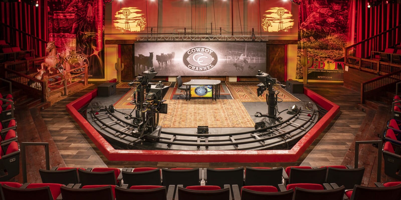 The Cowboy Channel is the first 24-hour channel dedicated to western sports and the western way of life and is appropriately located in a former livestock auction barn. Senior Lighting Designer Mike Grabowski lit this project in the historic Fort Worth Stockyards. The studio has a 325-seat theatre and is used for live event broadcasts, call in shows, daily news programming, and concerts. The lighting design compliments the barn and embraces the unique setting as an essential part of the broadcast experience.