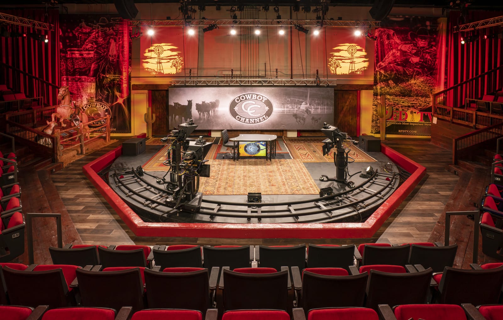 The Cowboy Channel is the first 24-hour channel dedicated to western sports and the western way of life and is appropriately located in a former livestock auction barn. Senior Lighting Designer Mike Grabowski lit this project in the historic Fort Worth Stockyards. The studio has a 325-seat theatre and is used for live event broadcasts, call in shows, daily news programming, and concerts. The lighting design compliments the barn and embraces the unique setting as an essential part of the broadcast experience.